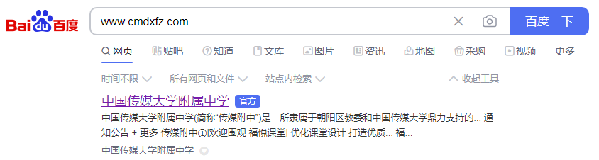 二组校栏目中,选择中国传媒大学附属中学;