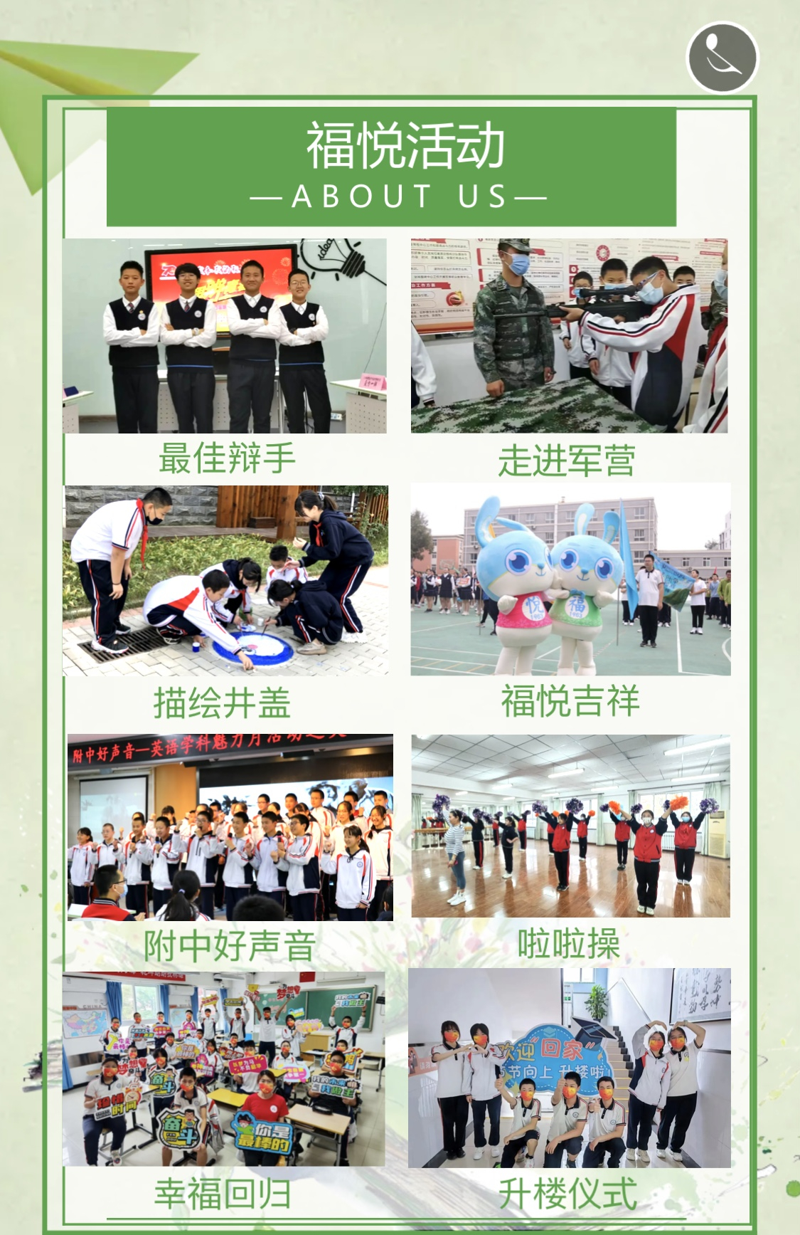 优势2:我校作为大学附中,距离传媒大学不足1公里,得天独厚的距离优势,可以让孩子们在初中阶段就能走进大学,参观大学博物馆,感受大学文化氛围,聆听大学教授讲课,与优秀大学生近距离交流,助力孩子们从小立志,勤奋学习。