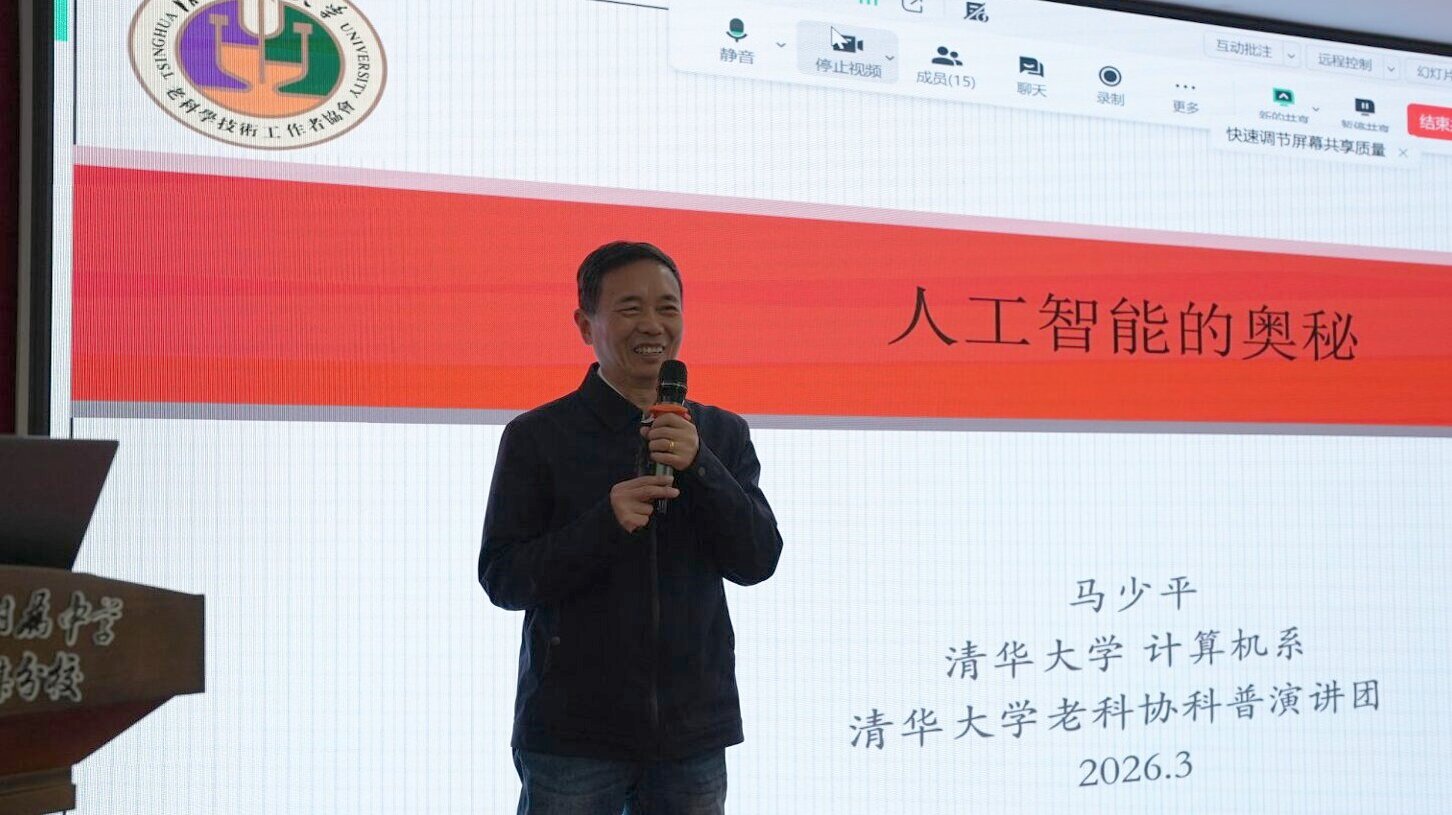 活动现场,马少平教授凭借深厚的学术积淀和丰富的人工智能教育研究经验,将复杂的 AI 专业知识转化为贴近中学生认知的趣味内容,从生活中的 AI 应用切入,让同学们直观感受到人工智能已悄然融入日常。讲座中,马教授以 “小明升学” 的趣味问题引发思考,通过对比 AI 的不同回答,让同学们理解人工智能的语言理解与逻辑推理特点;随后从脑启发的人工智能出发,讲解神经元与人工神经网络的原理,以猫、狗、兔、鸟的图像分类为例,生动阐释人工神经网络的工作机制,更将围棋类比为分类问题,巧妙解读 AlphaGo 战胜人类棋手的背后逻辑。